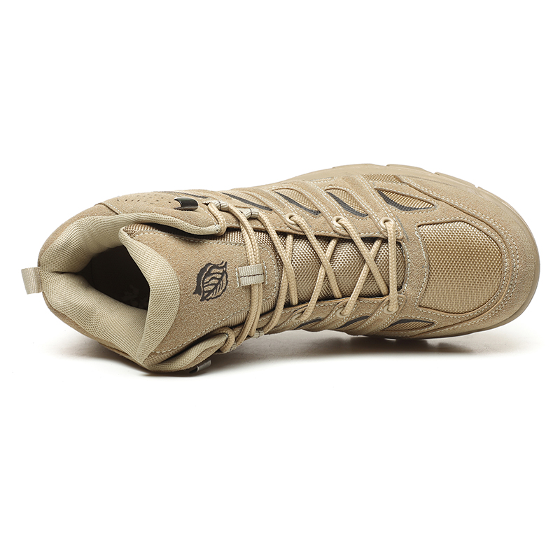 The upper of these men's combat boots is crafted from suede leather, ensuring durability and scratch resistance, with leather used for decorative purposes. The combat boots' outsole is made from lightweight rubber, and the curved edges of the outsole are seamlessly integrated with the uppers, enhancing the overall durability of these combat boots.