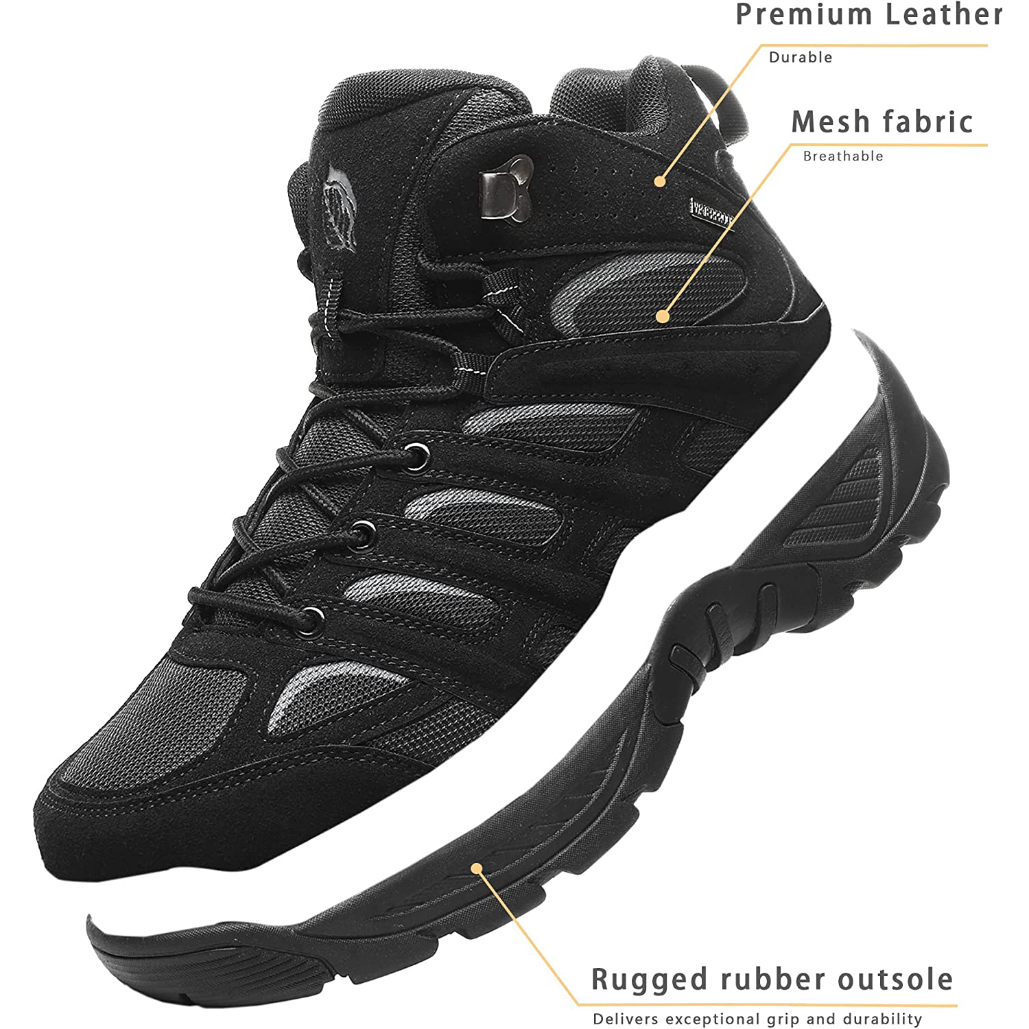 Equipped with a rubber toe cap and reinforced heel for anti-collision design, these combat boots enhance stability, provide cushioning, ankle support, and protect toes from sharp objects. They are perfect for daily work or tactical activities, offering excellent protection.